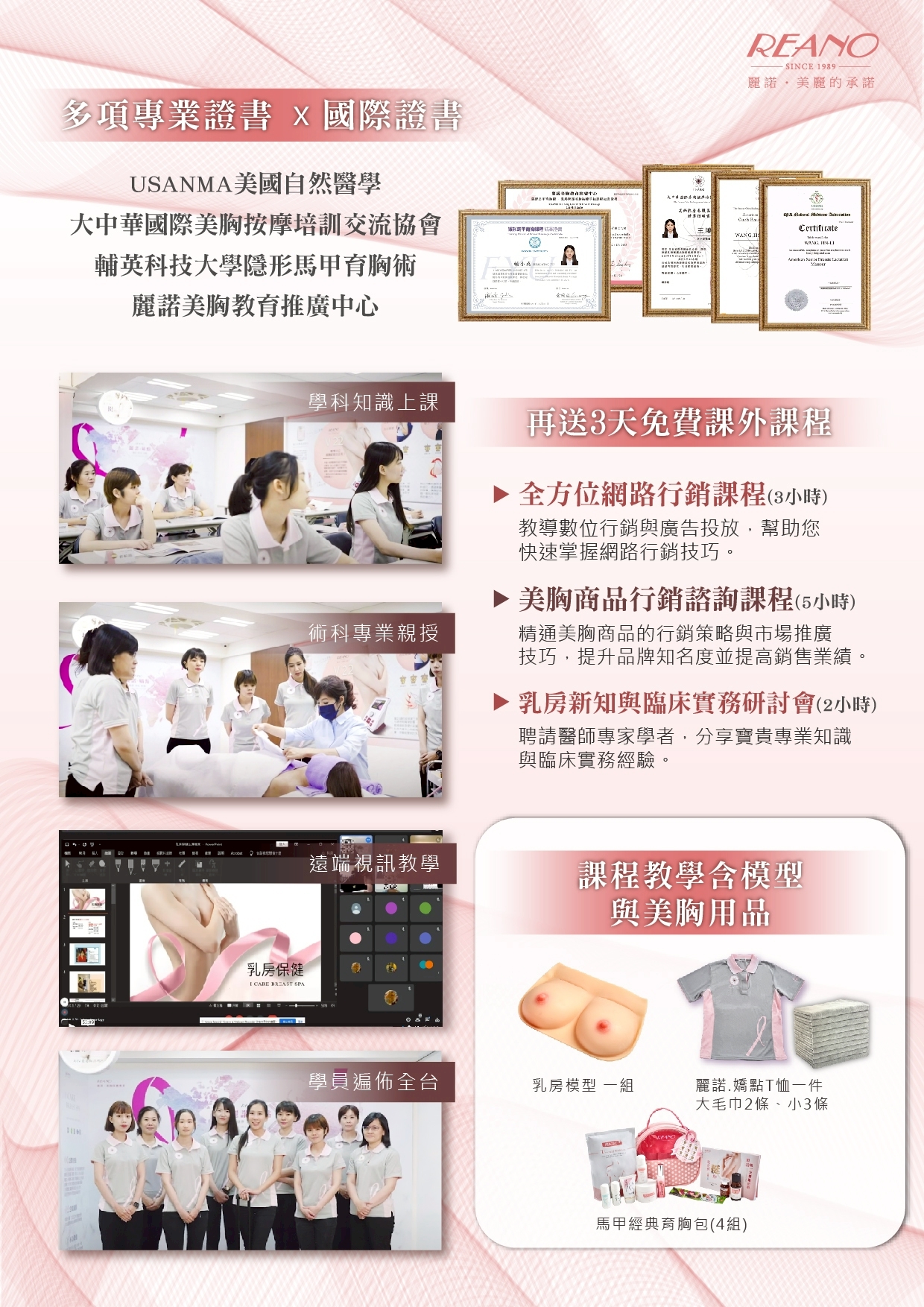從專業知識、美胸手技、到創業行銷心法,一步步帶你將興趣轉化為事業,讓學習成為人生最值得的投資。